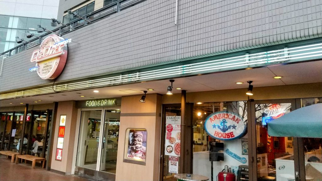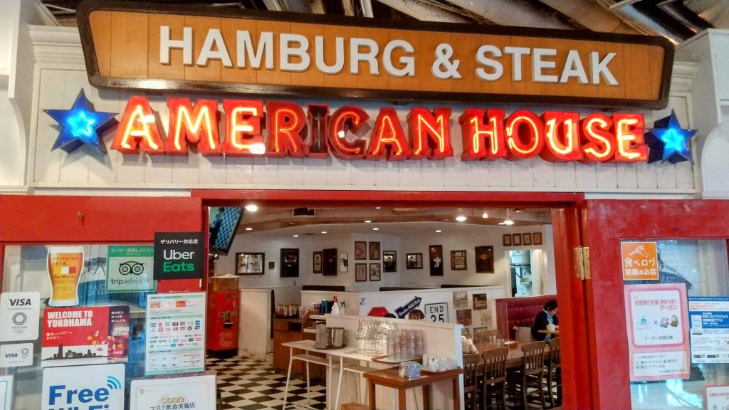 隣接するお馴染みのクイーンズスクエアにある「AMERICAN HOUSE」にて早めの晩ごはんを。