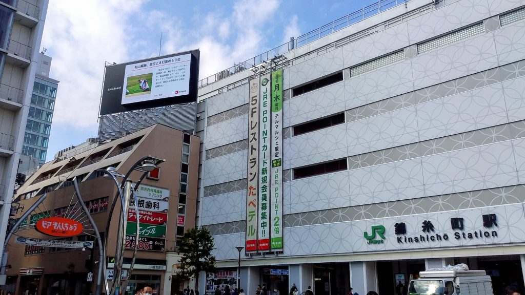 この駅を擁する錦糸町・亀戸エリアは東京の下町にありながら副都心に指定されていて、駅前には大型の商業施設がズラリと並ぶ光景が広がります。