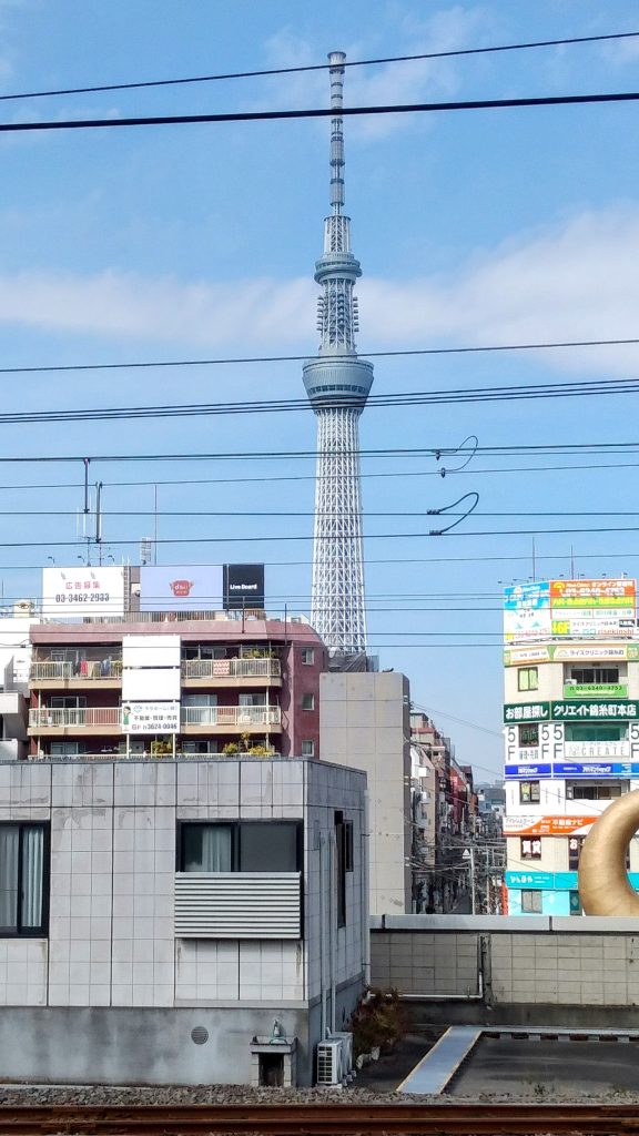 JR総武線のホームからは大迫力の東京スカイツリーが!