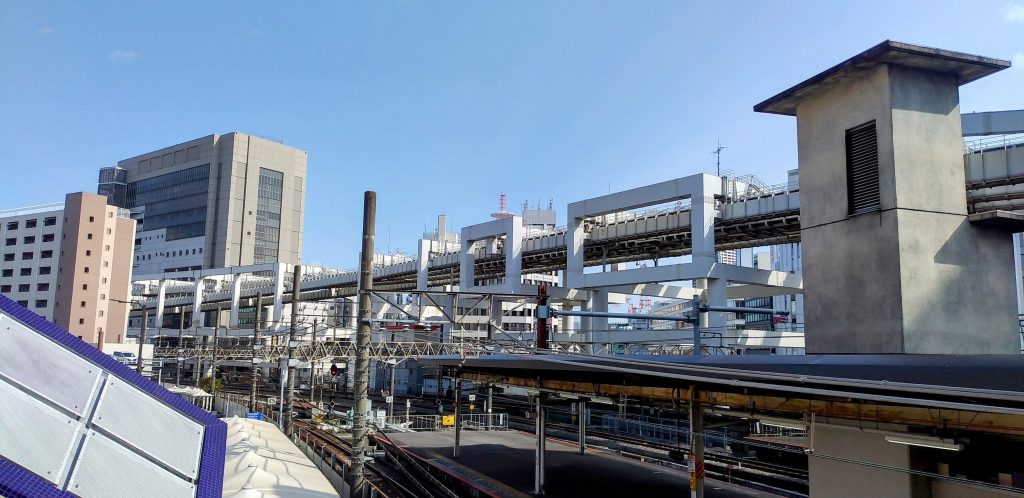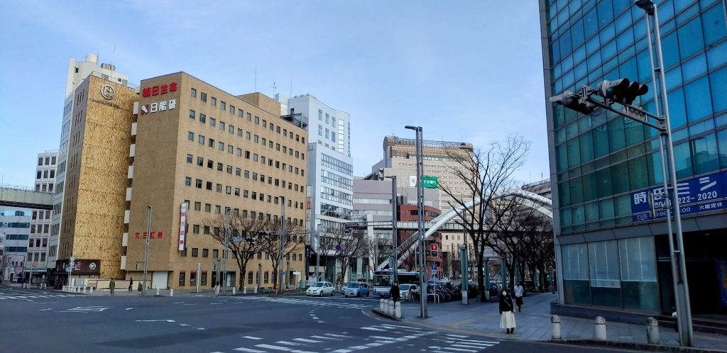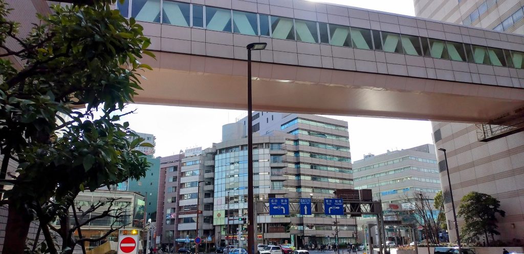 ここで外に出て南側へ歩みを進めると、オフィスビルが立ち並ぶ駅前らしい光景に。