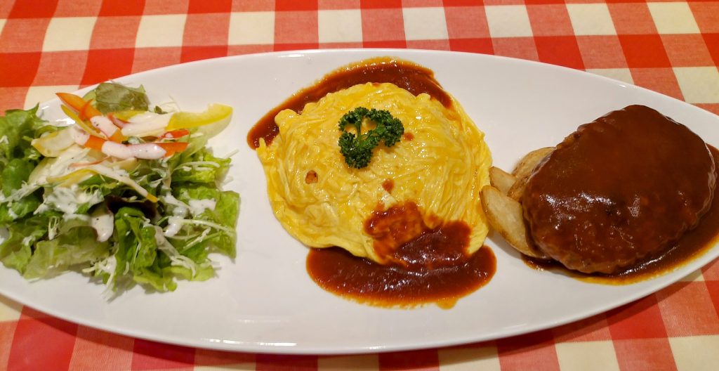 ご飯は「東京洋食屋 神田グリル」にてサラダ、オムライス、ハンバーグのミックスプレートをいただきました🍴