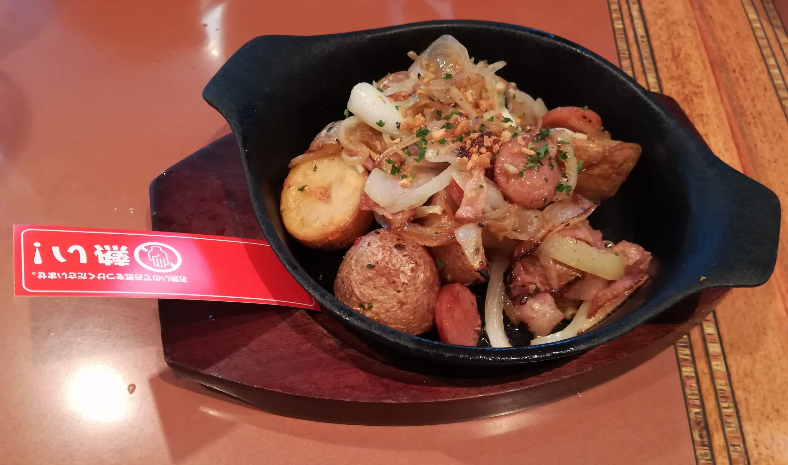 折り紙つきの逸品である鶏の唐揚げに加え、「海老とソーセージのガーリック炒め」なるメニューも頼むことに。