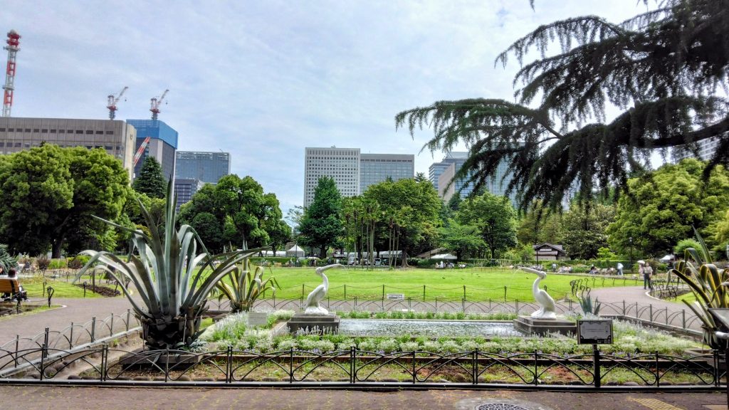 園内の豊かな自然と周辺の高層建築物とのコントラストが実に素敵。