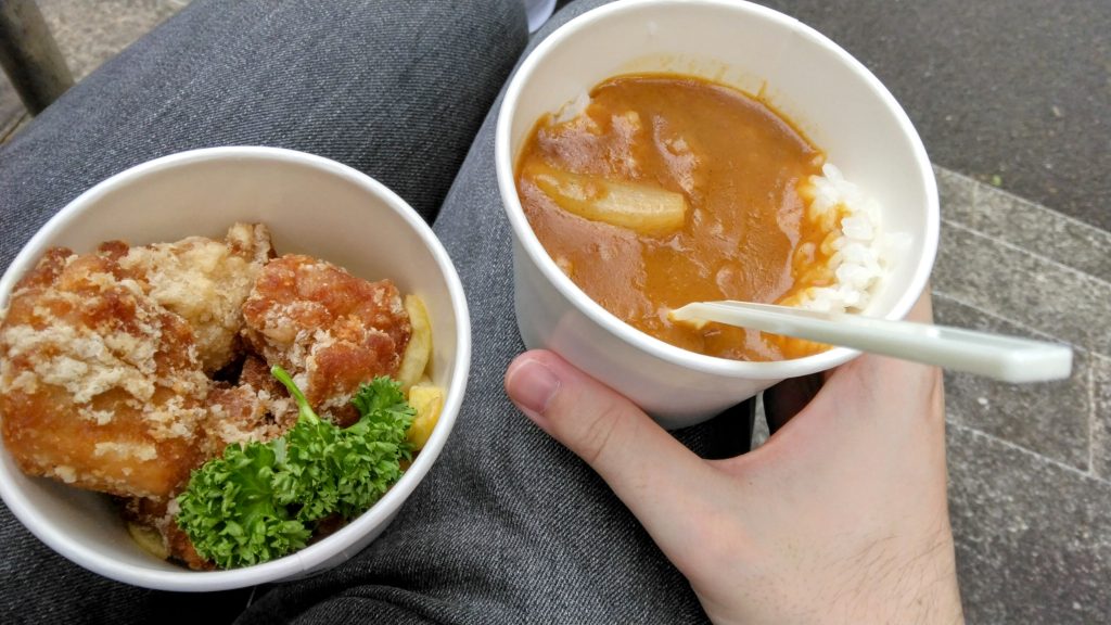 地下鉄日比谷駅周辺をぶらりと歩いたのち、日比谷松本楼のブースに戻ってカレーライスと唐揚げをいただきました🍴