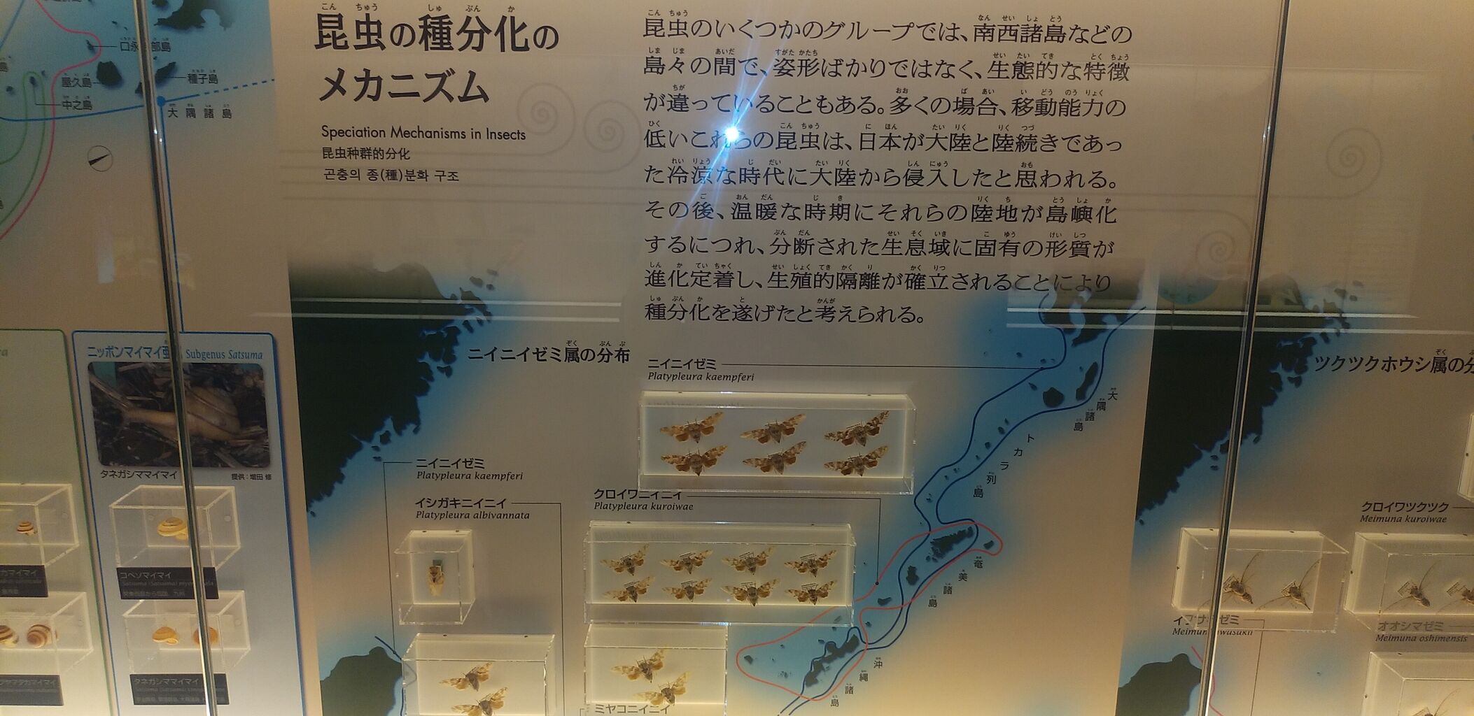 昆虫も例外ではなく、大陸と陸続きだった地理状況を背景に多数の種がやってきて、温暖になって島嶼化すると独自の種分化を遂げていたようですね。