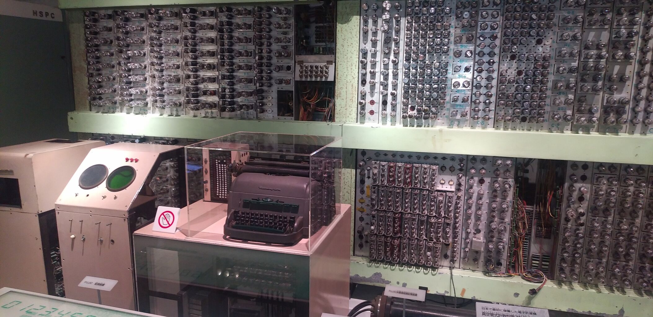 戦後間もなくの計算機。当時の最新技術だったのだと思いますが、こんなに大きな機械だったとは。