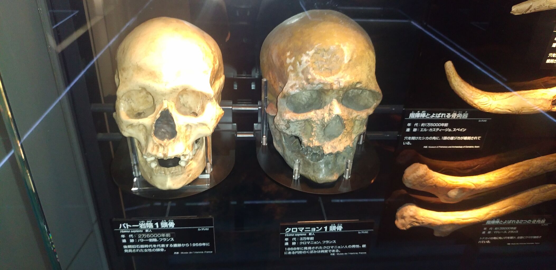 港川人の人骨は初めて見ました。歴史の教科書で知った時からイメージしていた通りの小柄な体格です。