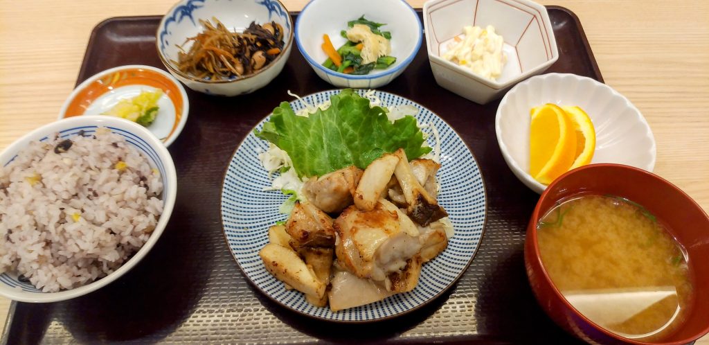 鶏肉のグリルからサラダ、お味噌汁に至るまで上品な味わいな上、大ボリュームで満足です。