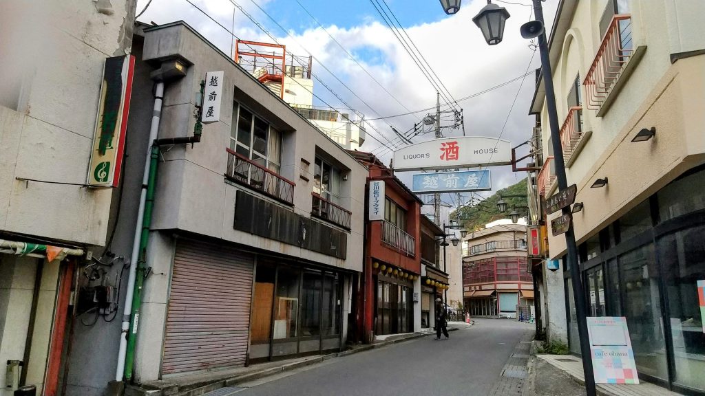 駅舎と向かい合う形で食事処や土産物店が並ぶ駅前はそれなりに栄えているようにも思いますが、少し歩いていくと次第に閑散としていき、温泉街とは言いつつもこれといって派手な市街地は無いことが判明します。