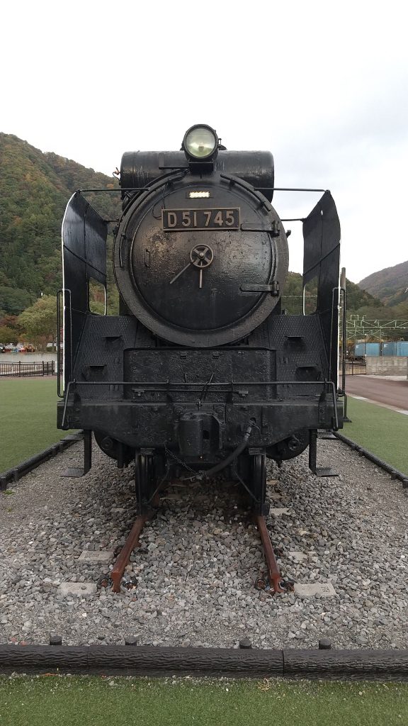 ここには、昭和18年より27年間にわたり活躍した蒸気機関車 D51745が保存展示されています。