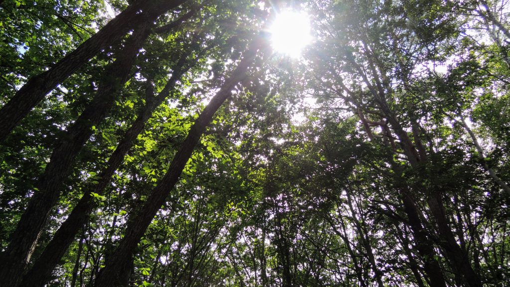 木々の隙間から顔を出すお日様の輝きが神々しい。