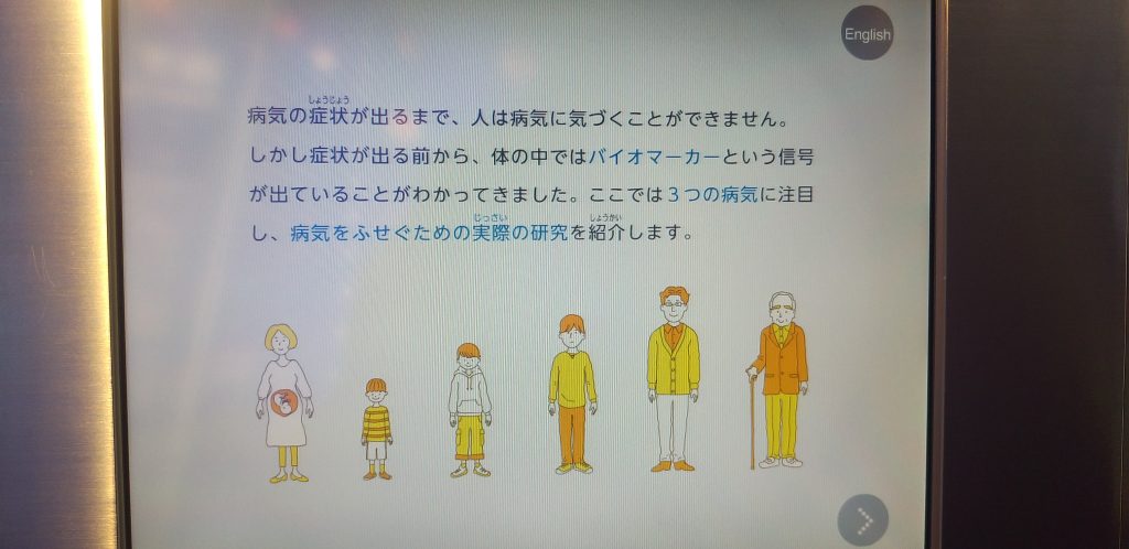 がんやアルツハイマーなど、いくつかの病気を例に挙げて治療というよりも発症そのものを予防するための研究が現在進んでいることが示されていました。