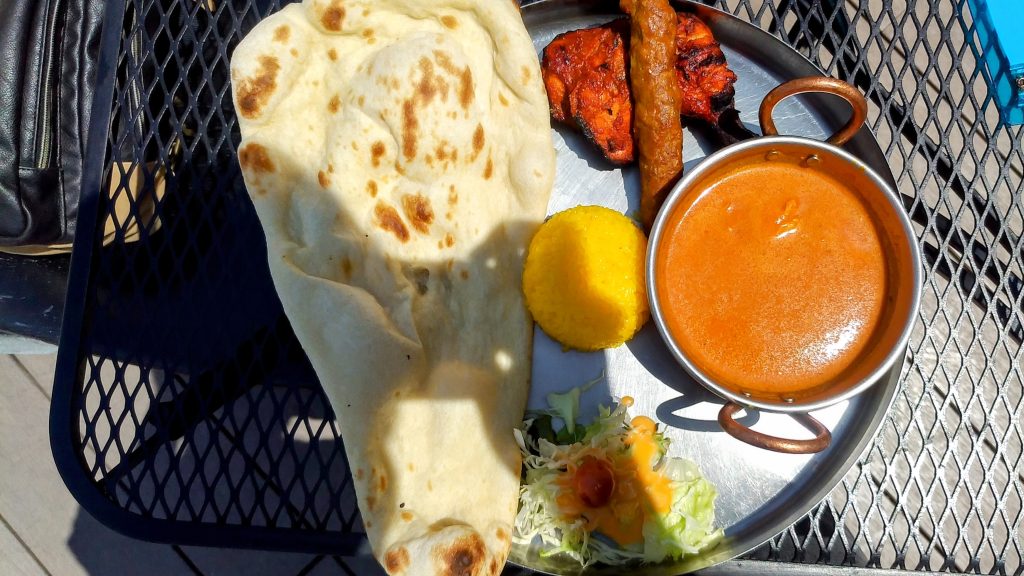 我々がいただいたランチメニューは、本格的なインドカリーにナンとサラダ、サフランライスとお肉がついた超豪華版。