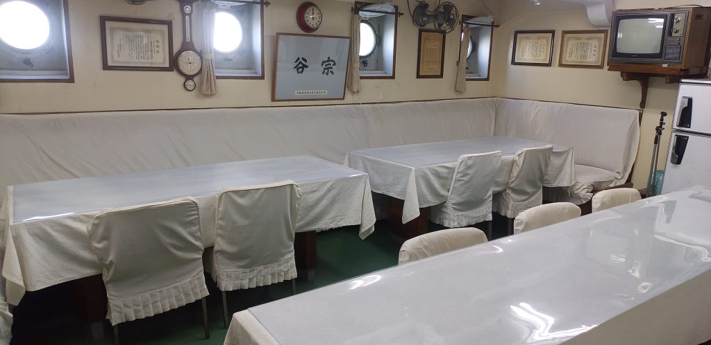 船内では、1950~60年代に日本初の南極観測船として活躍した「宗谷」を、当時の雰囲気を可能な限り再現する形で南極観測にまつわる展示が行われています。