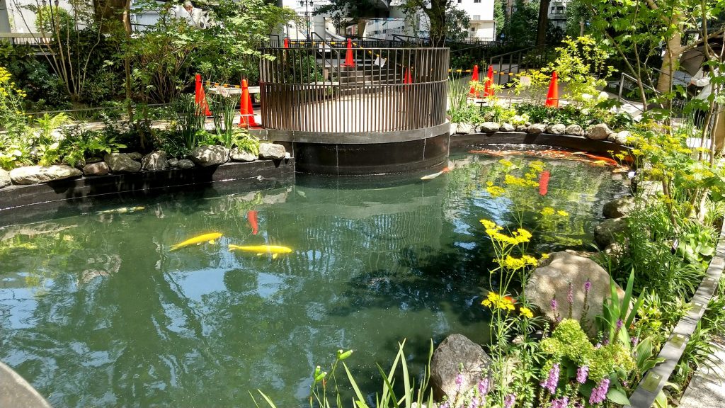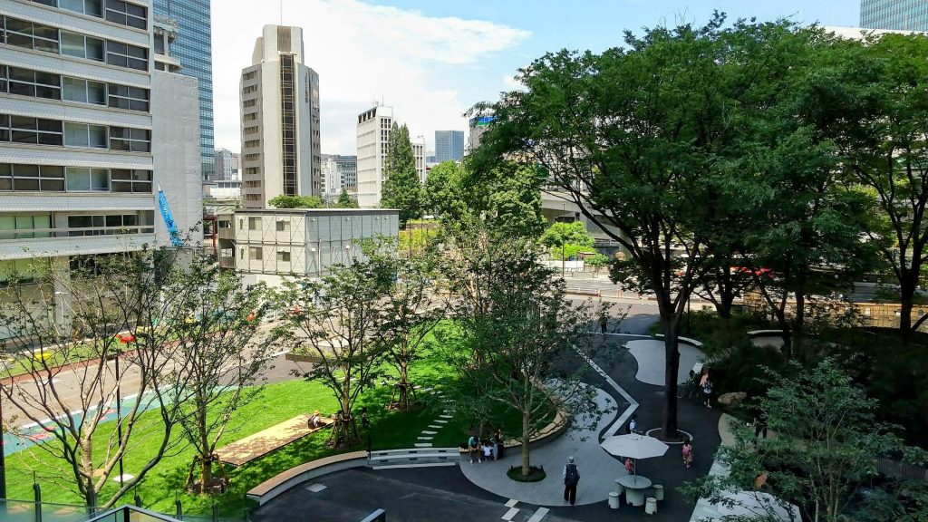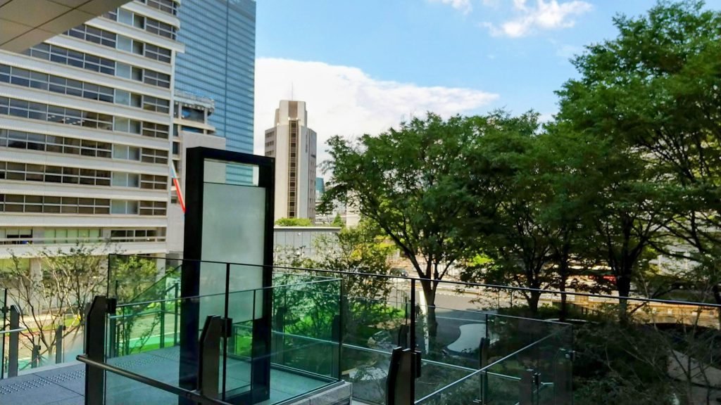 この近辺はオフィス街ながらも自然豊かなので風が爽やかに吹き抜けます。暑いけどね…!