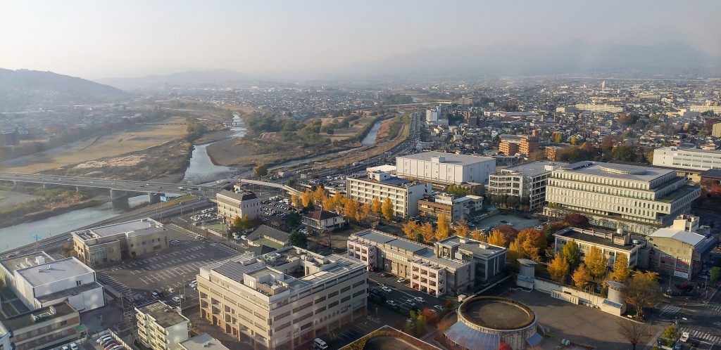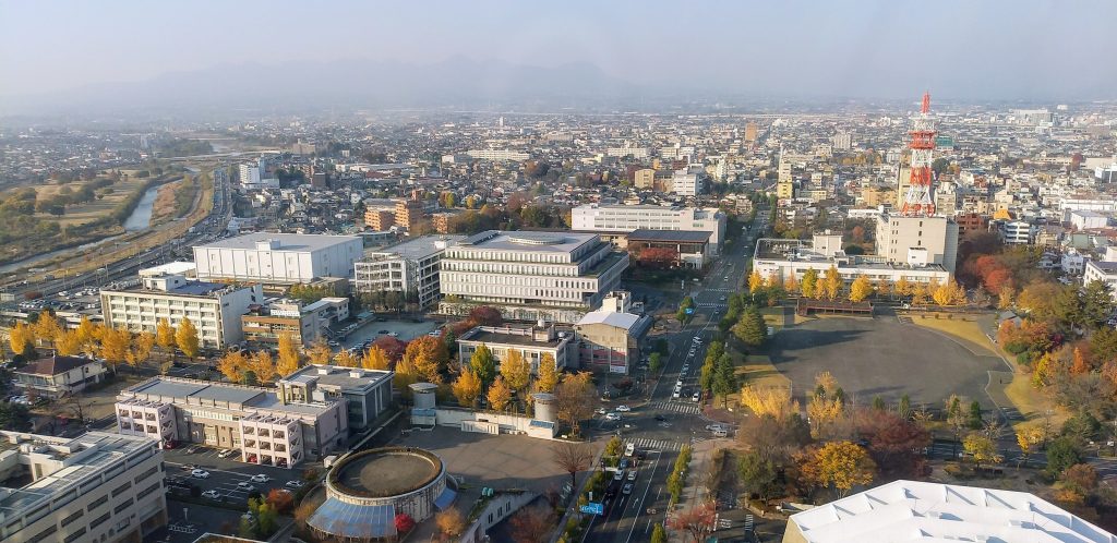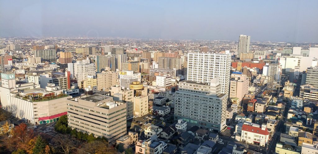 地上90mの高さから見下ろす高崎市街地と遠くの山並みは、実に壮観でした。