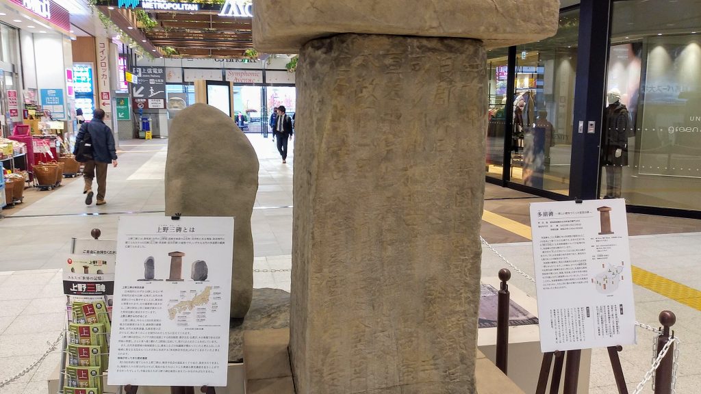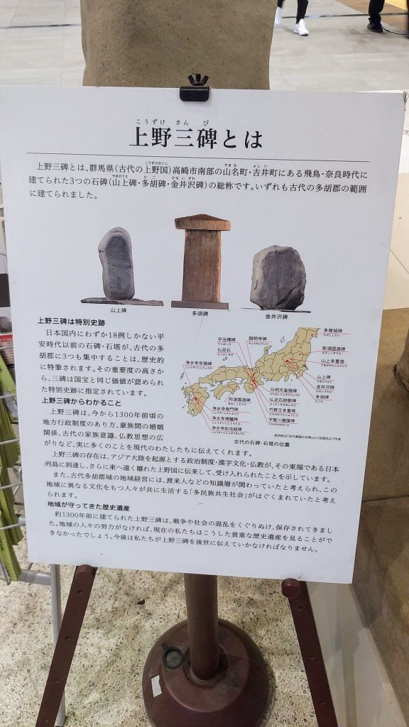 いくつかの百貨店内を少し散策したのち高崎駅に戻ると、飛鳥・奈良時代の石碑とされる「上野三碑」のレプリカが飾られていました。