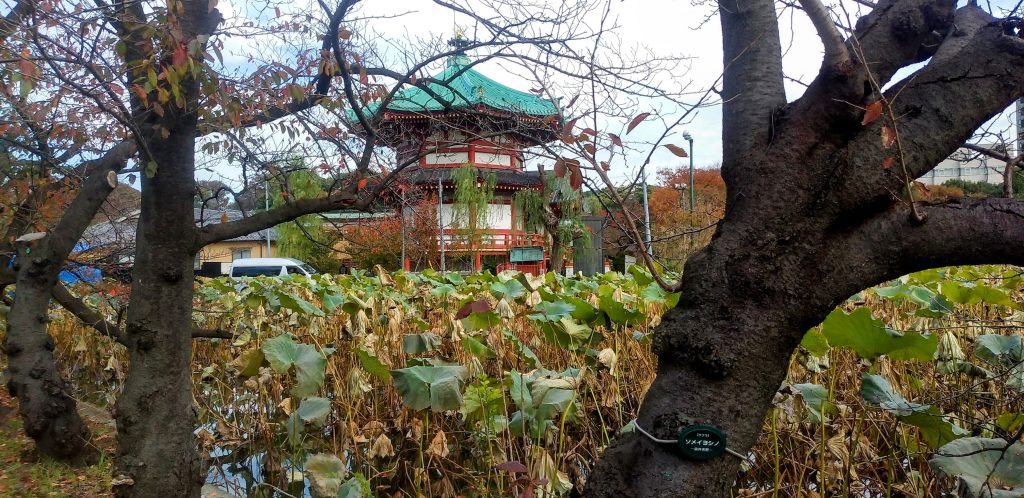 蓮池の向こうにまたもやスカイツリー!