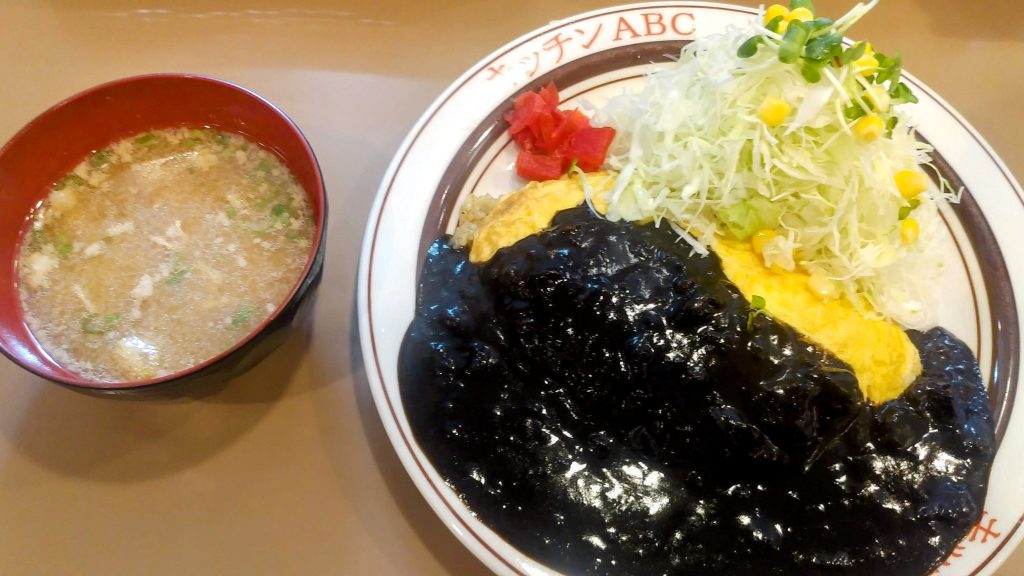 カレーは真っ黒ですが味は普通にスパイシーで、ふわとろなオムライスとの相性も抜群でした。