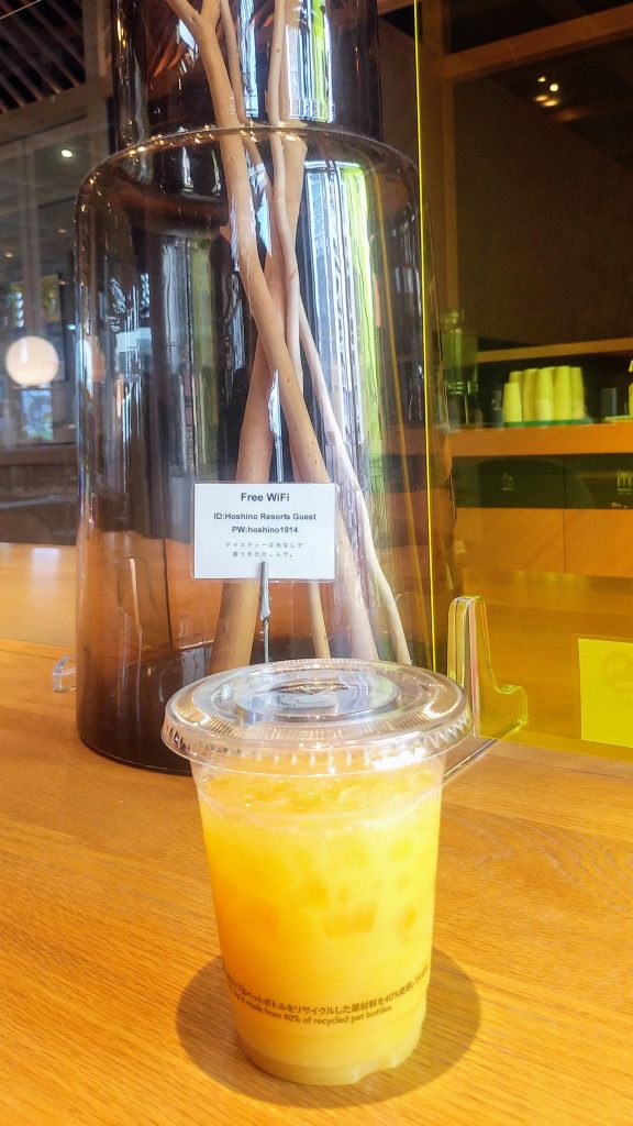 駅に戻る途中でひときわ目を引く星野リゾートのホテルを発見し、そういやカフェもあったなと思い出したので入ってみることに。